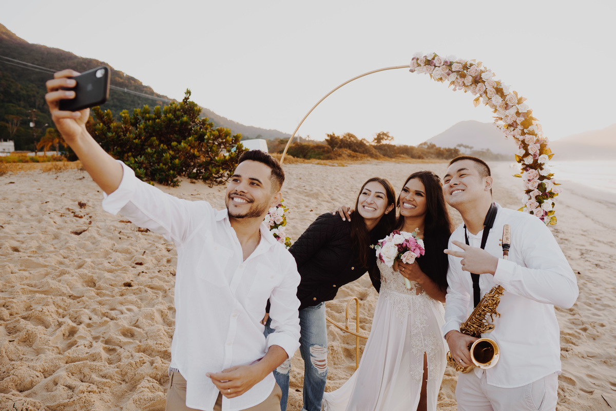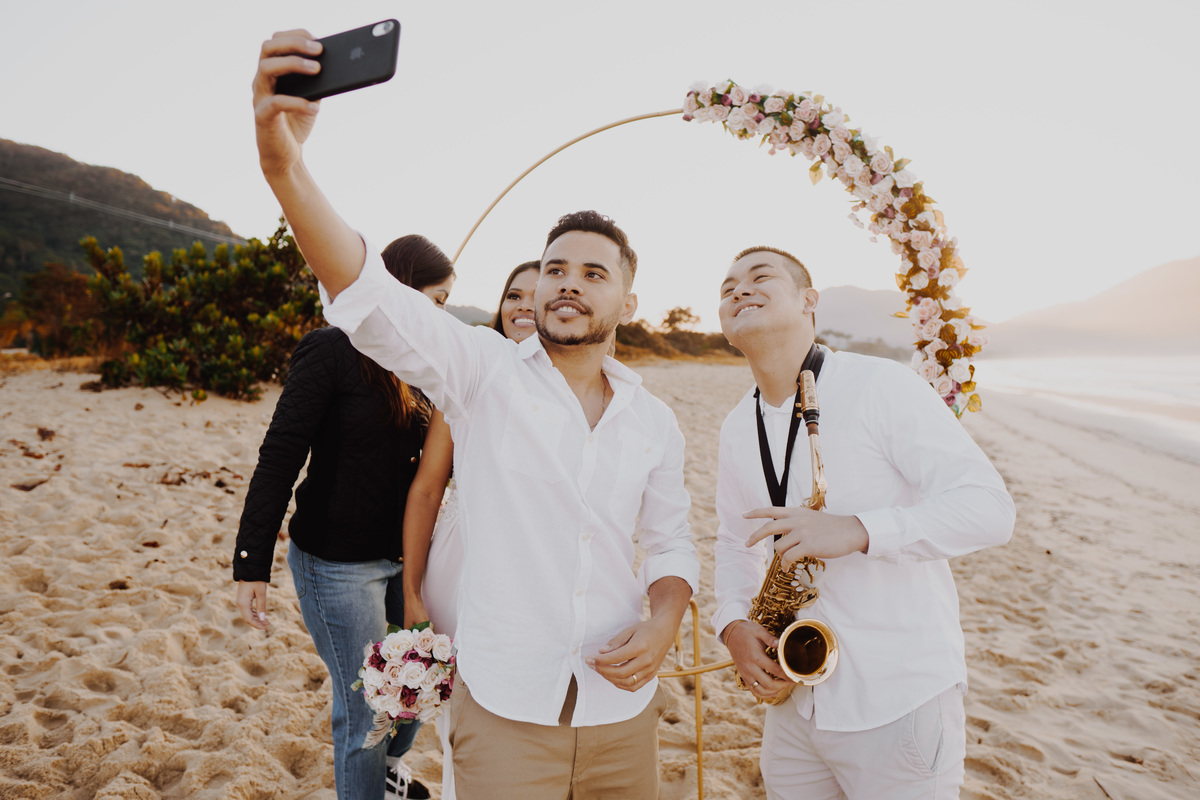 Eles optaram por uma cerimônia intimista na praia e escolheram a Los Carvalhos para registrar esse momento único e perfeito dos dois, a cerimonia contou com a presença de um nascer do sol espetacular, (confesso que nos emocionamos), tinha tanto sentimento em cada detalhe e gesto dos dois que era impossível não se emocionar.